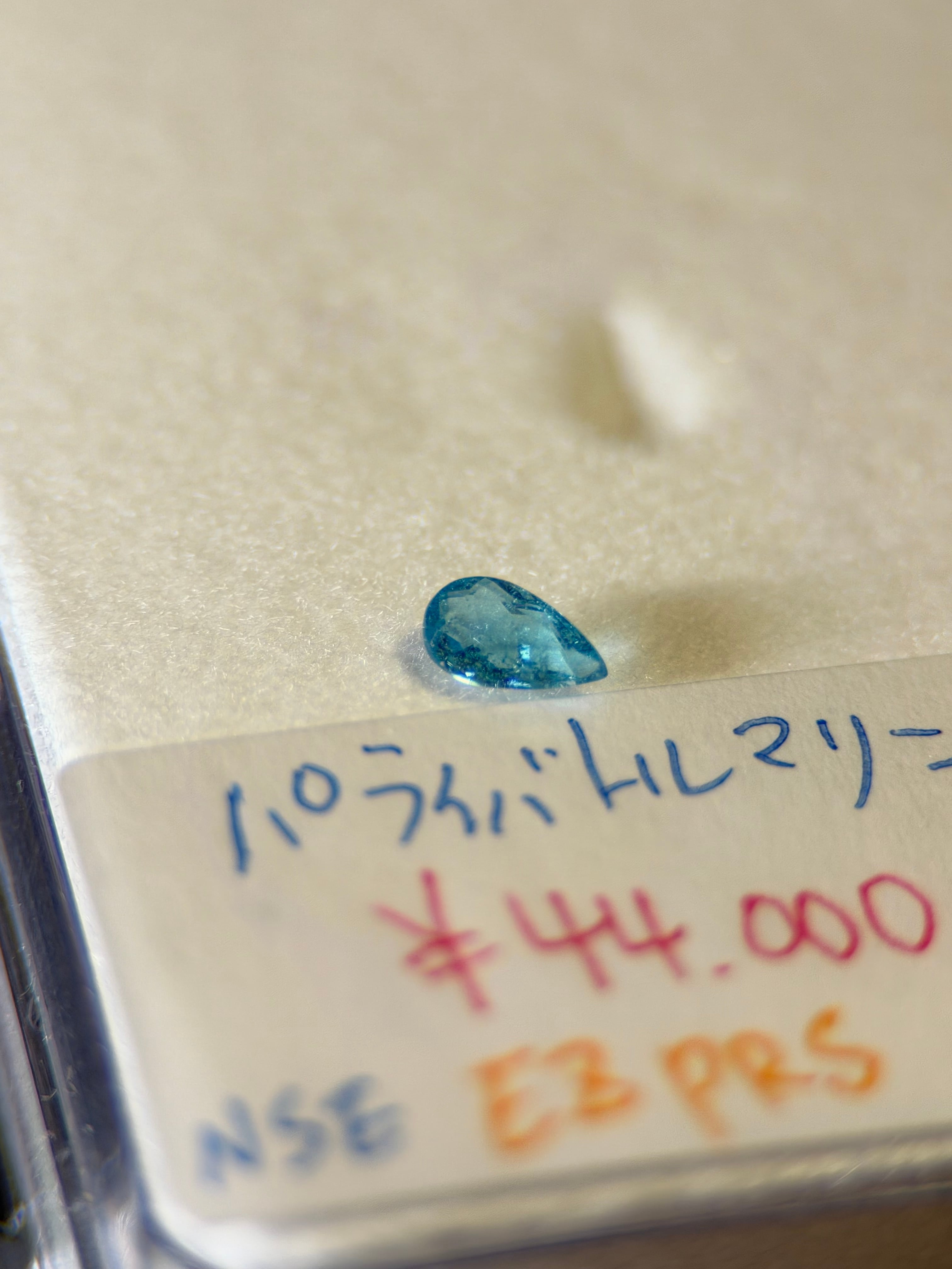 スッキリと青く透き通ったペアシェイプ型....